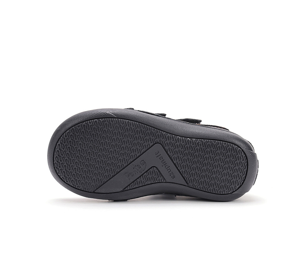A felsőrész természetes bőrből készül, a talp pedig hajlékony, csúszásmentes gumiból.