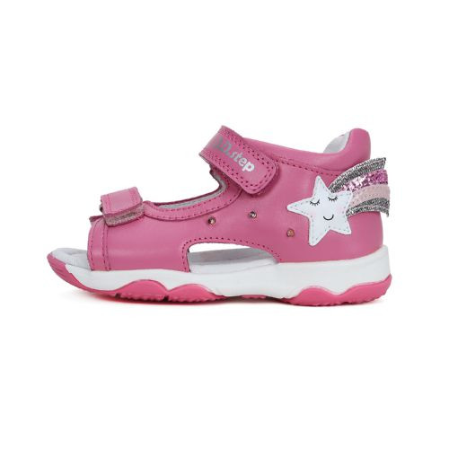 • Nyitott orrú és zárt kérgű gyerek szandál |A zárt kérgű (sarokrészen zárt) szandálok stabil tartást biztosítanak a           boka számára. Könnyen felvehető, tépőzáras megoldás.